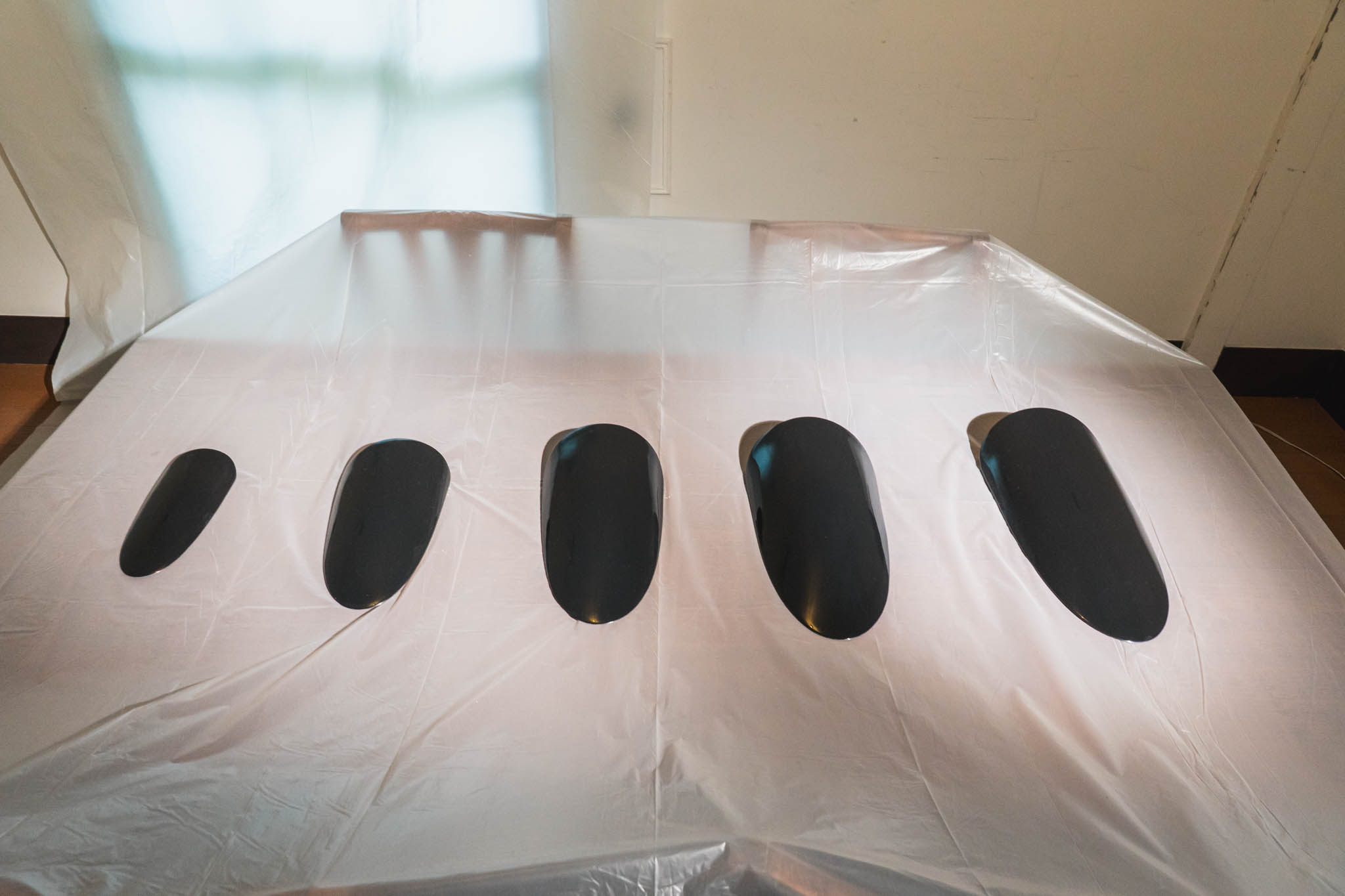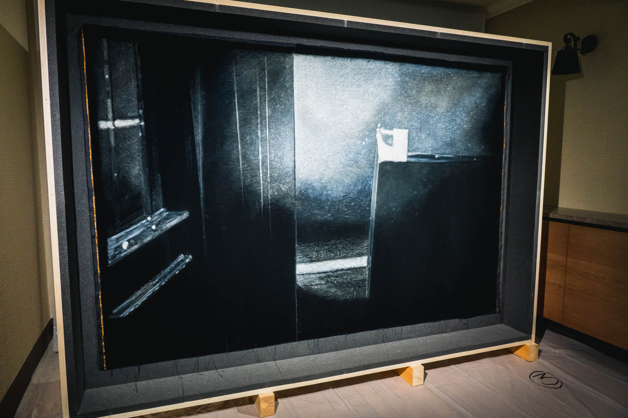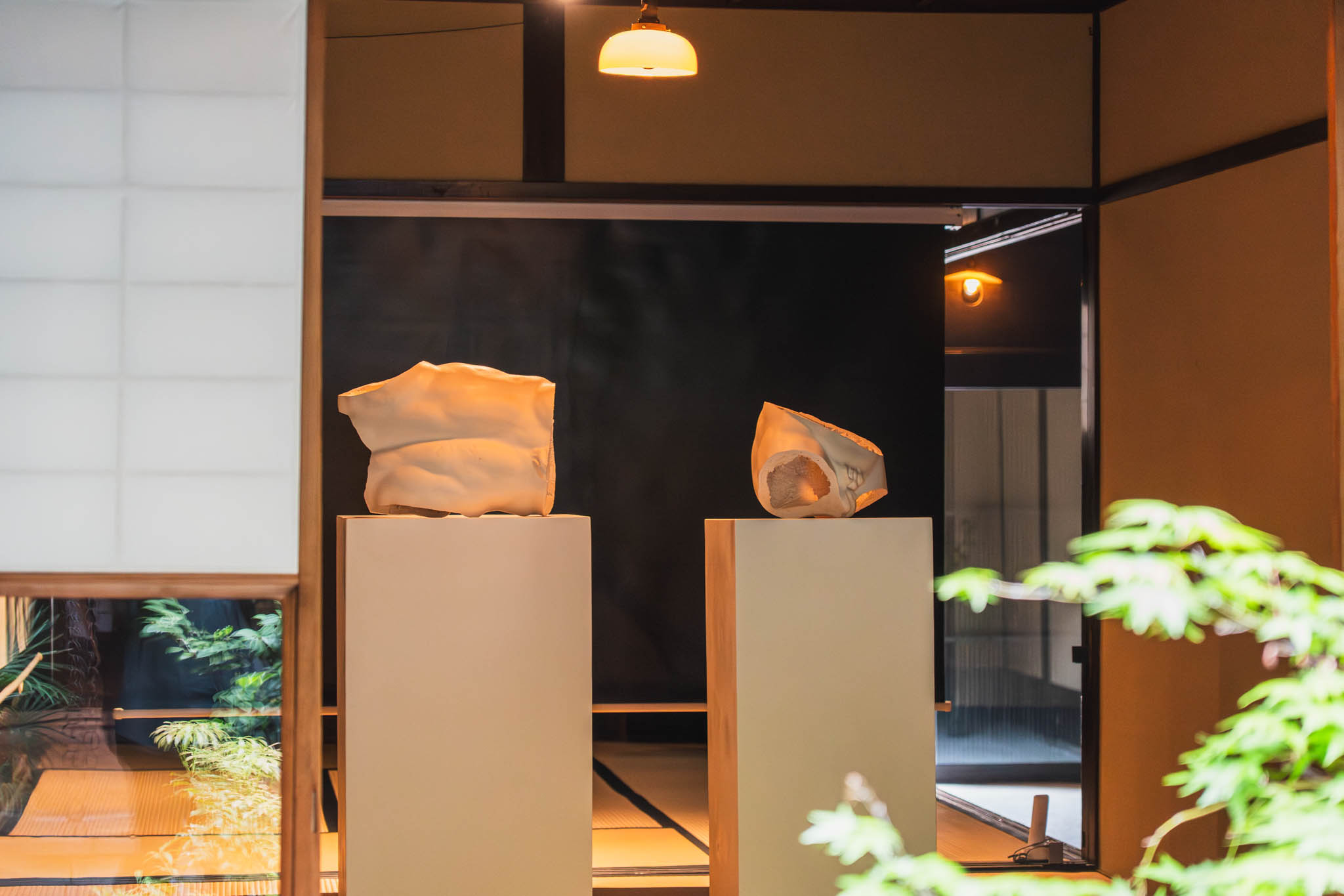 京都の「白の余白」は、作品一つひとつをじっくり見つめさせるための装置でした。一方、東京の「黒のビニール」は、邸宅全体に観客を浸らせるための装置です。