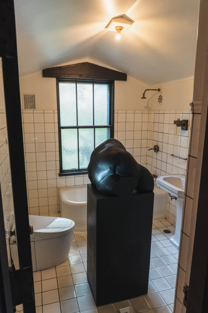 九段ハウスの展示は、約38点の作品が邸宅の各部屋に点在する形式です。2011年から2025年にかけて制作された作品が、玄関、応接間、書斎、寝室、地下、屋上に至るまで、ほぼすべての空間に配置されています。